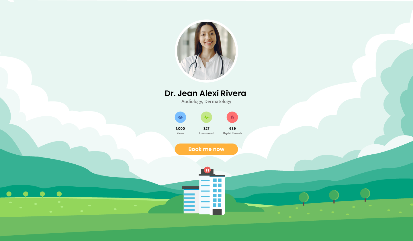 The doctor or clinic gets a free booking website through MYCURE, which they can then share in social media and/or email the URL link (website) to friends or network professionals to grow patient engagement. Below is a sample of what your free site will look like.