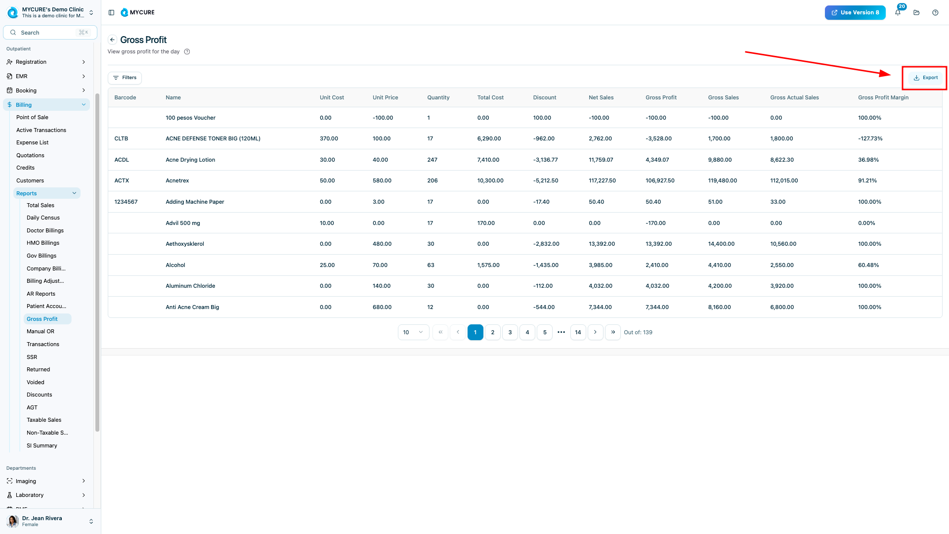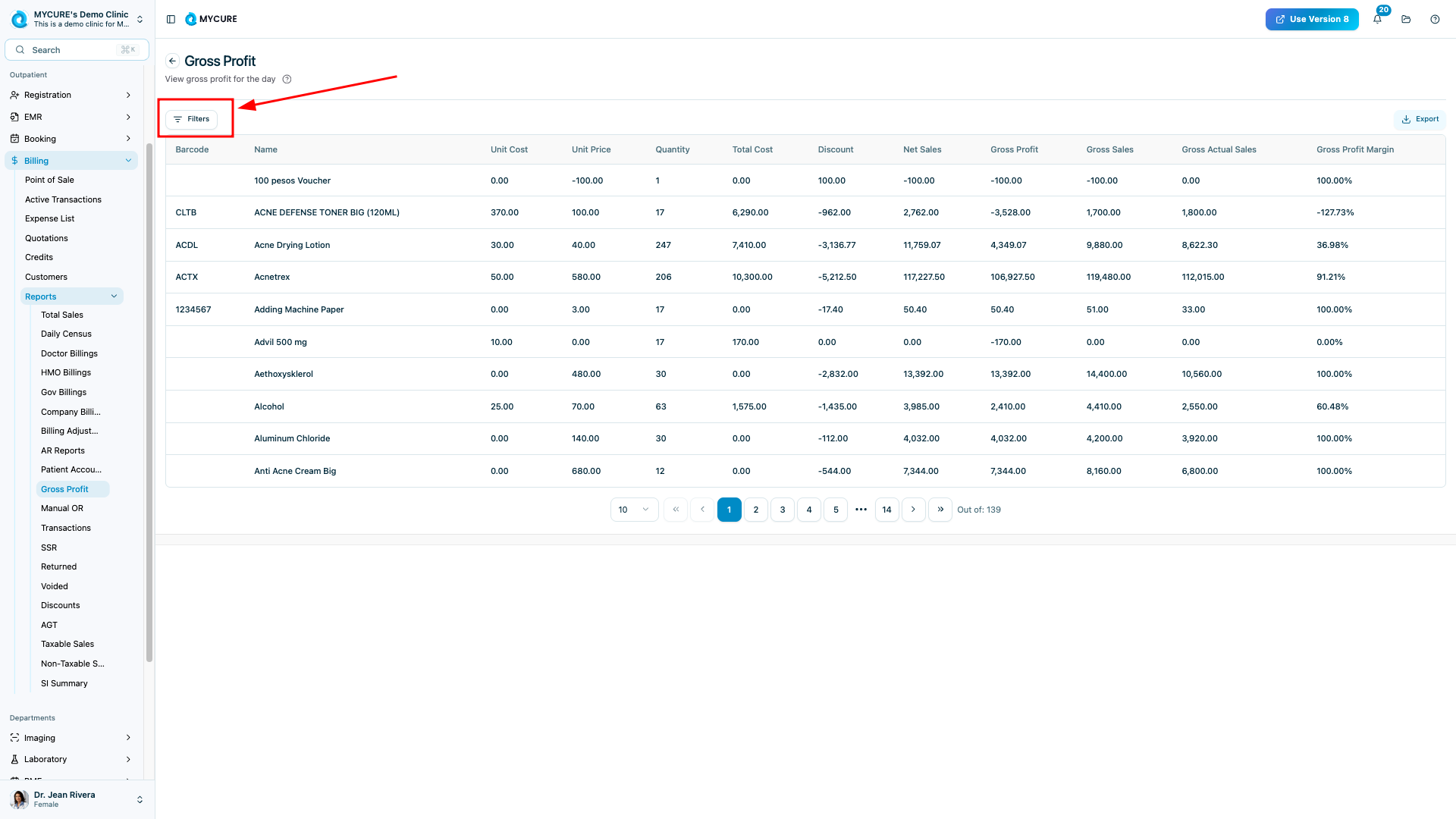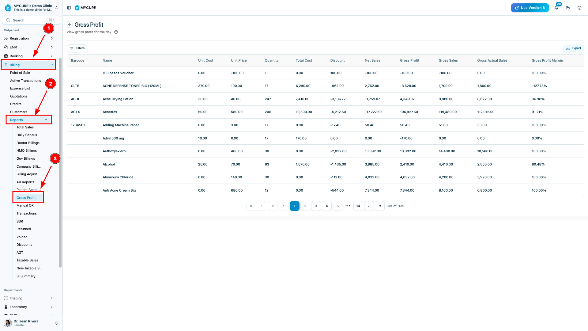 This tutorial will guide you through accessing, filtering, and exporting Gross Profit reports in the MYCURE system. The Gross Profit report is an essential financial tool that helps you track revenue, costs, and profit margins across different time periods.