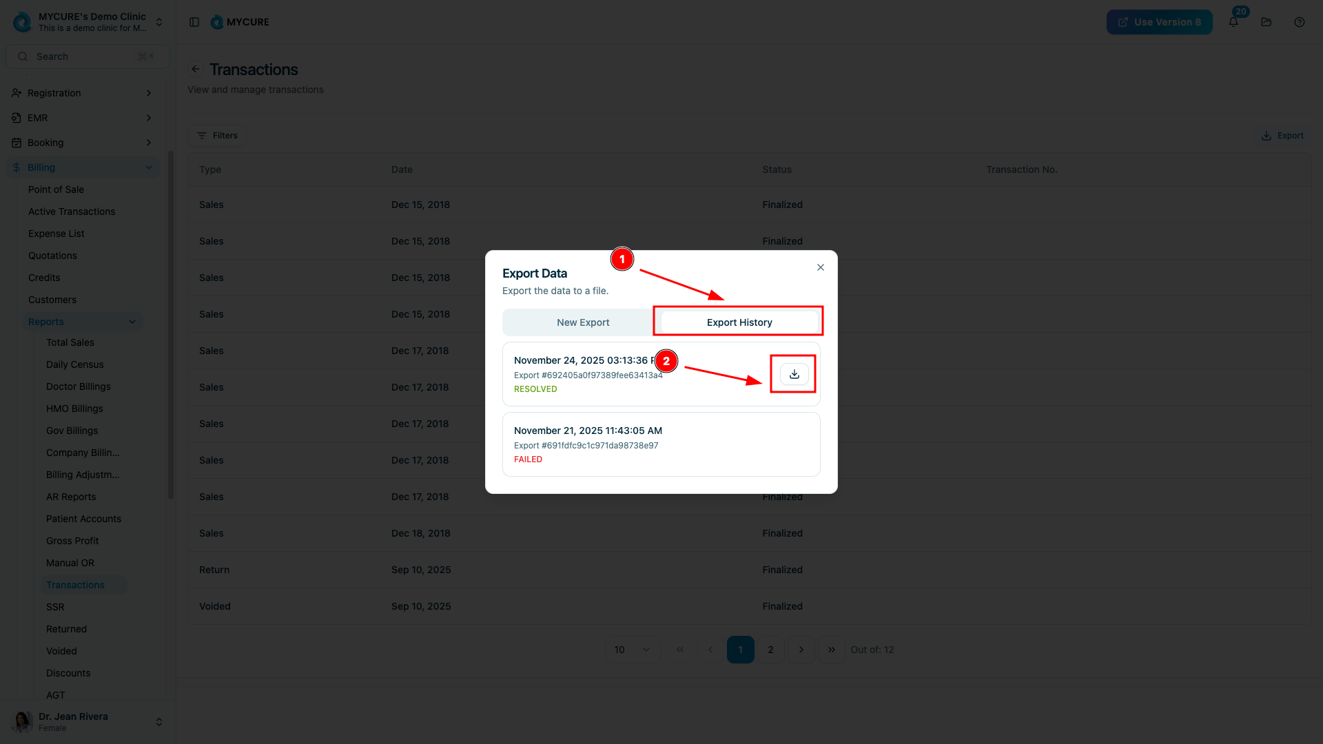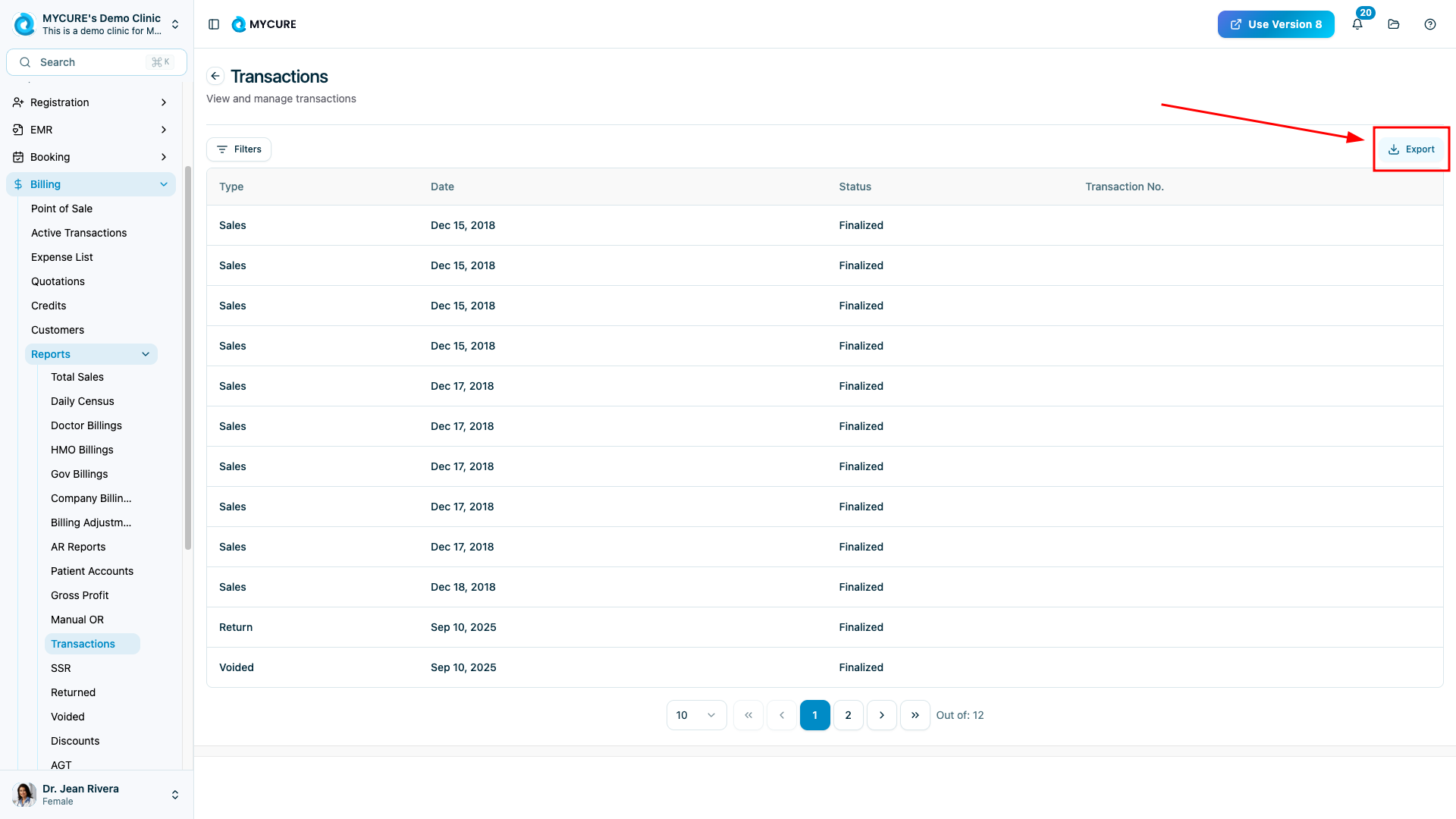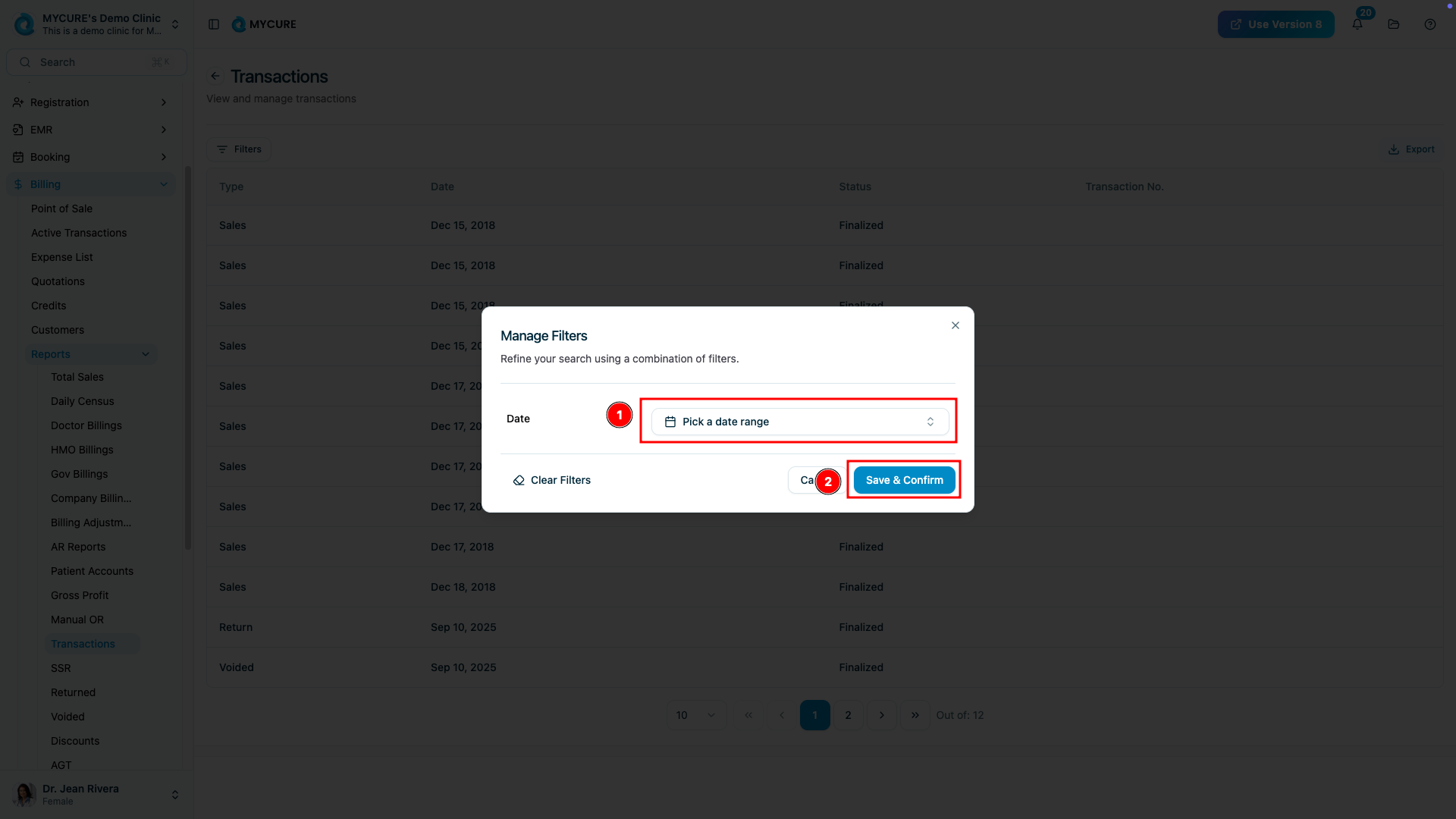 Transaction Reports in MYCURE v10 provide a comprehensive view of all billing transactions in your clinic. This tutorial will guide you through accessing, filtering, and exporting transaction data to help you track financial activities and prepare reports for accounting purposes.
