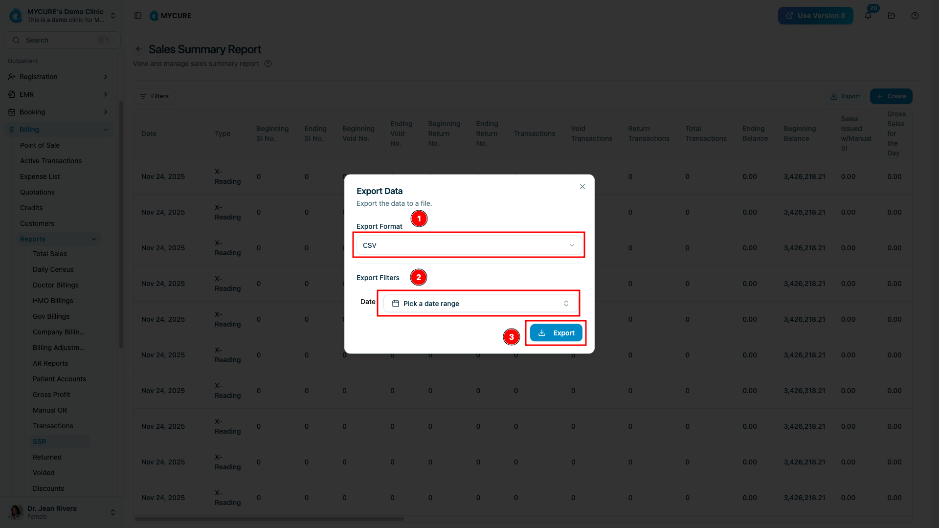 The Sales Invoice Summary in MYCURE provides a powerful way to view, filter, and export your sales data for reporting and analysis. This tutorial will guide you through accessing the report, applying filters to find specific information, and exporting data for further processing.