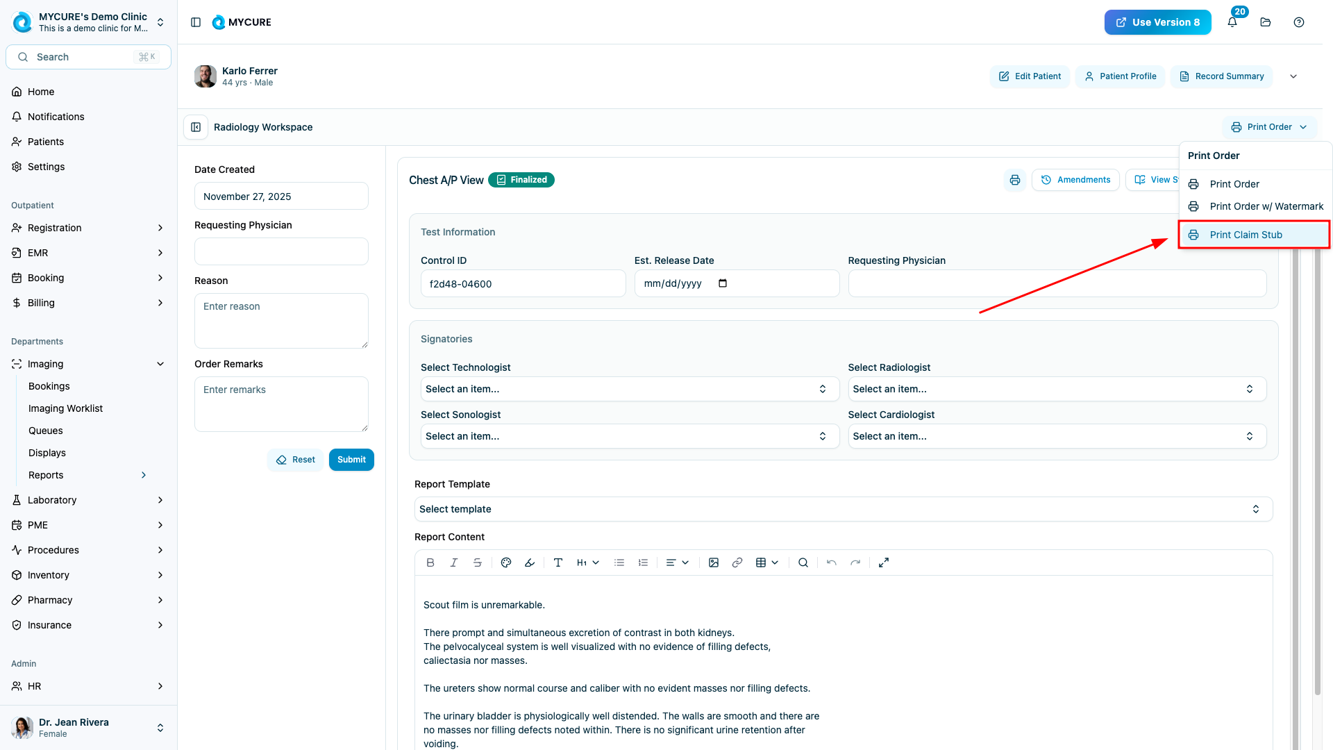 This tutorial will guide you through the process of accessing the Imaging Worklist in MYCURE and printing claim stubs for selected imaging orders. This functionality is essential for healthcare providers who need to manage imaging requests and provide patients with documentation for insurance claims.