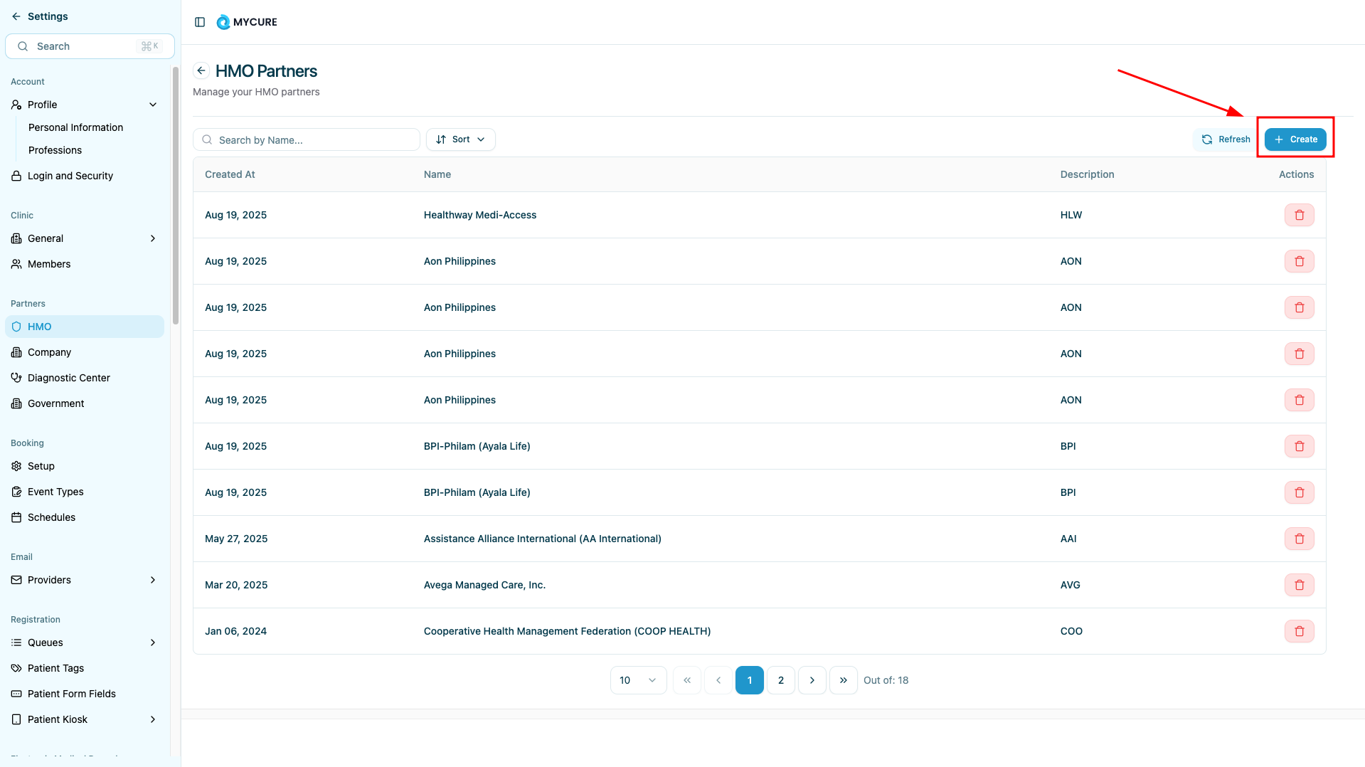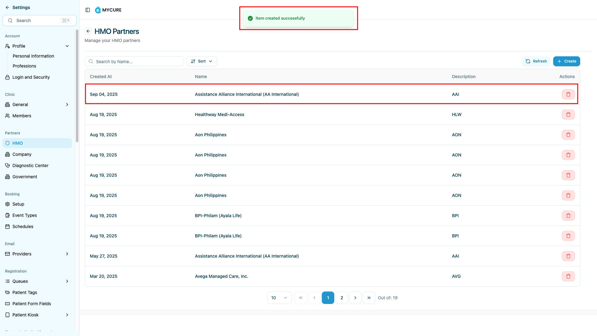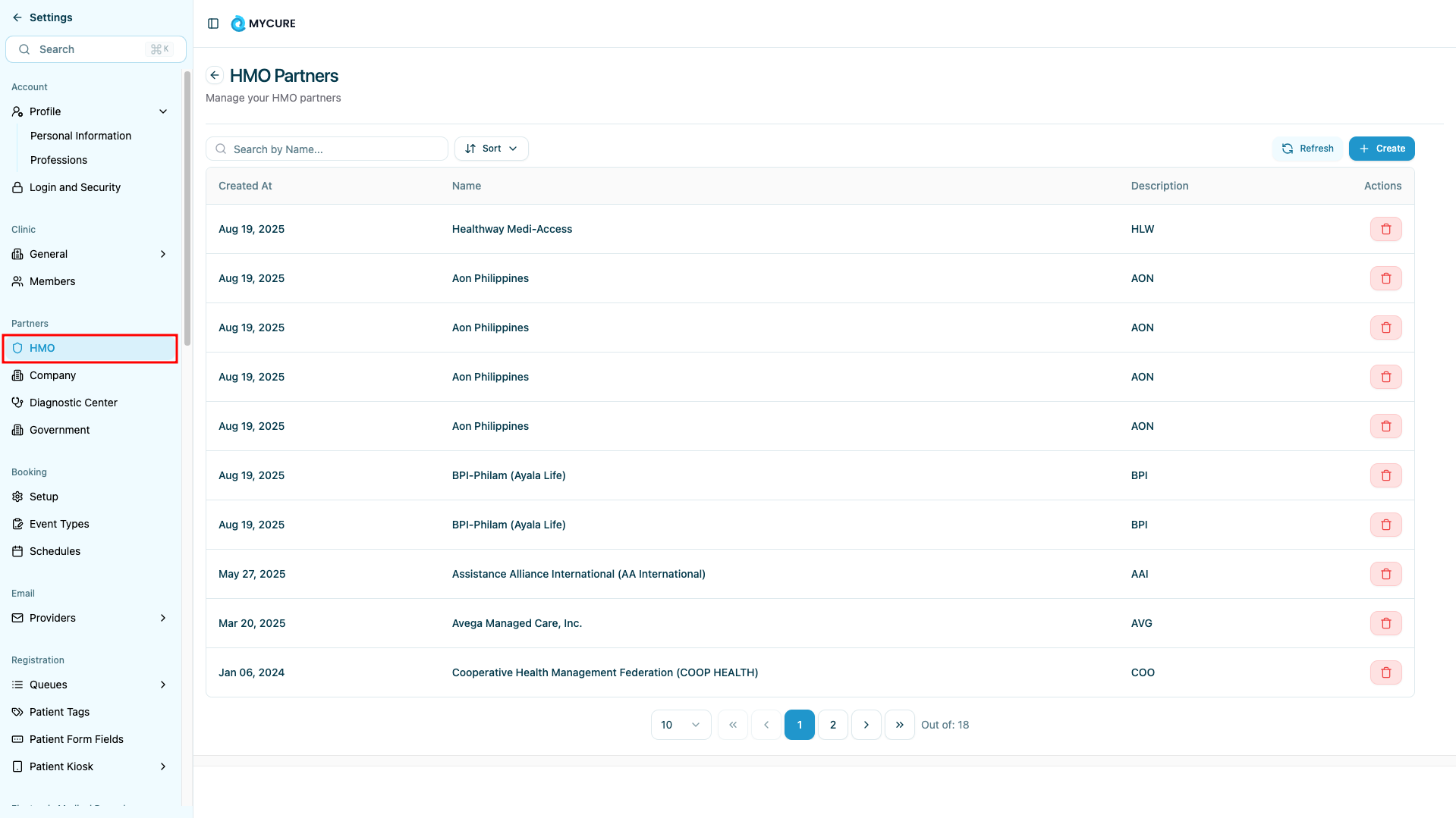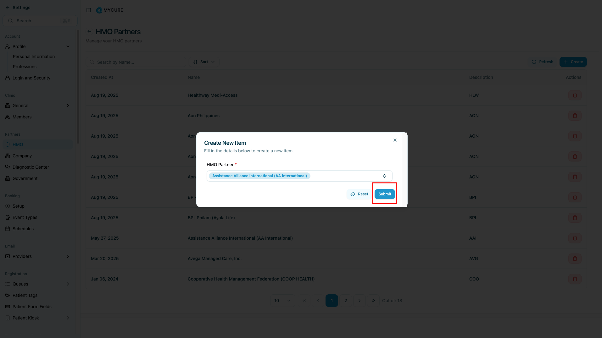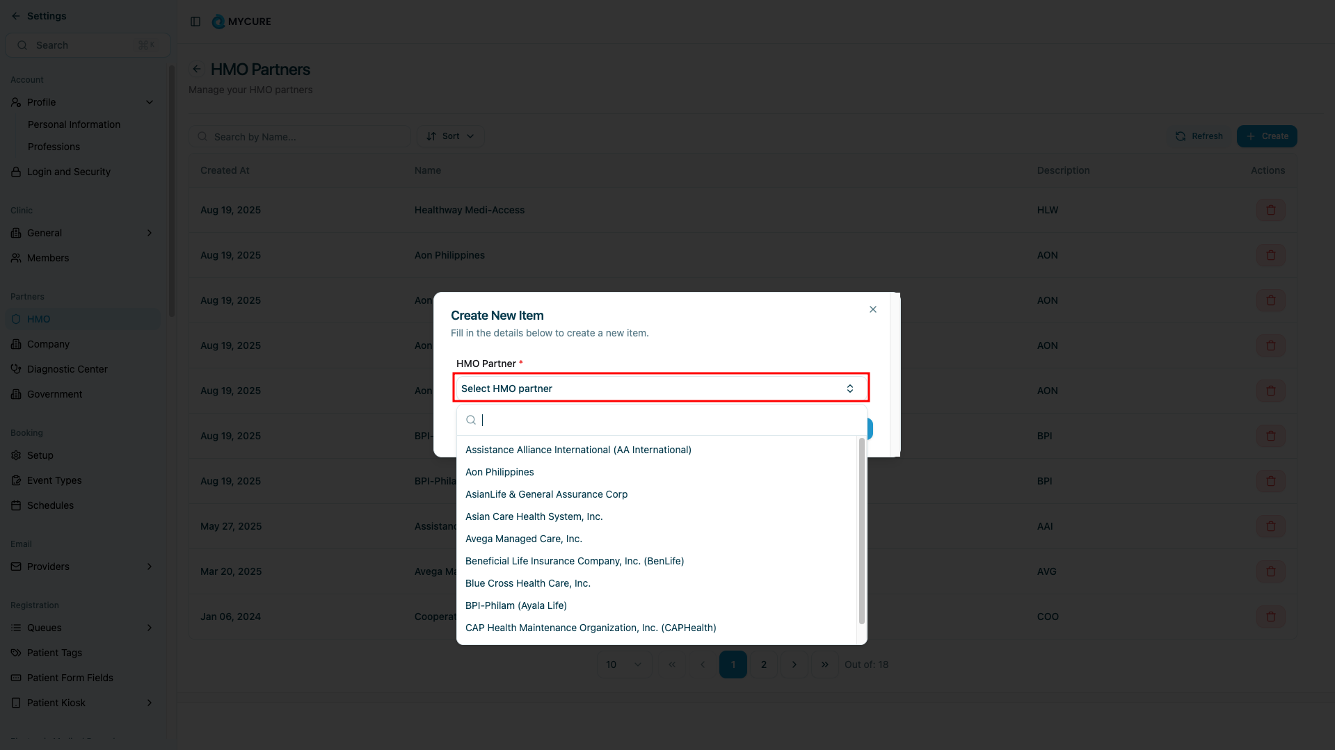 Only create partnerships with verified and authorized HMO organizations. Incorrect partnerships can lead to billing errors and insurance claim rejections.