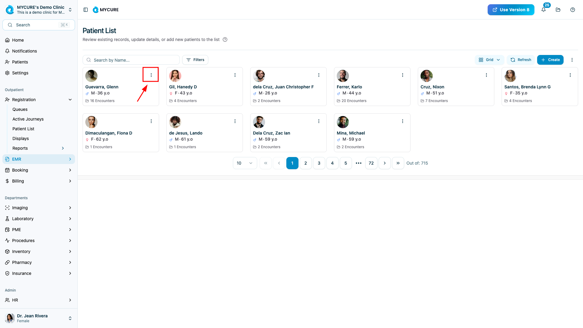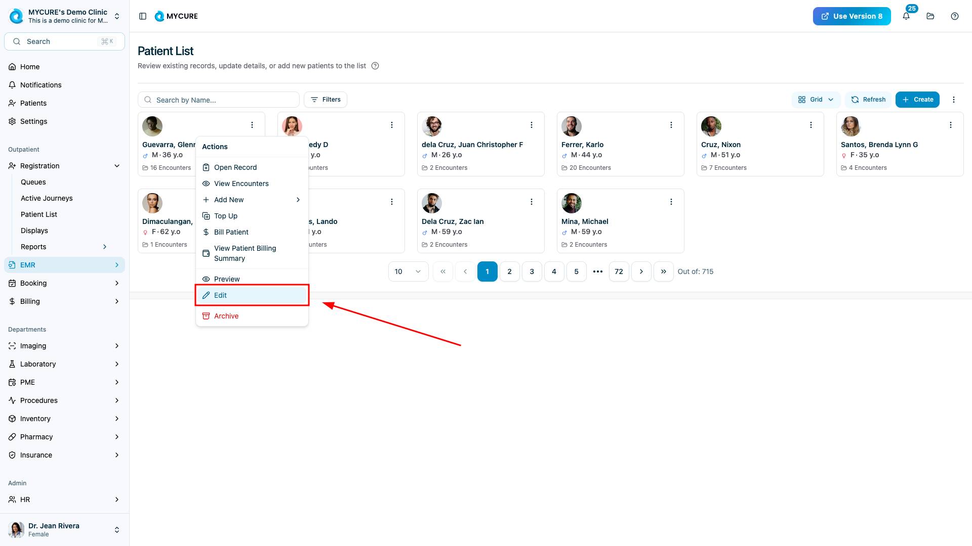 Browse through the patient list or use the search function to find the specific patient whose information you need to update. Click on the three dots button and choose "Edit" from the options.
