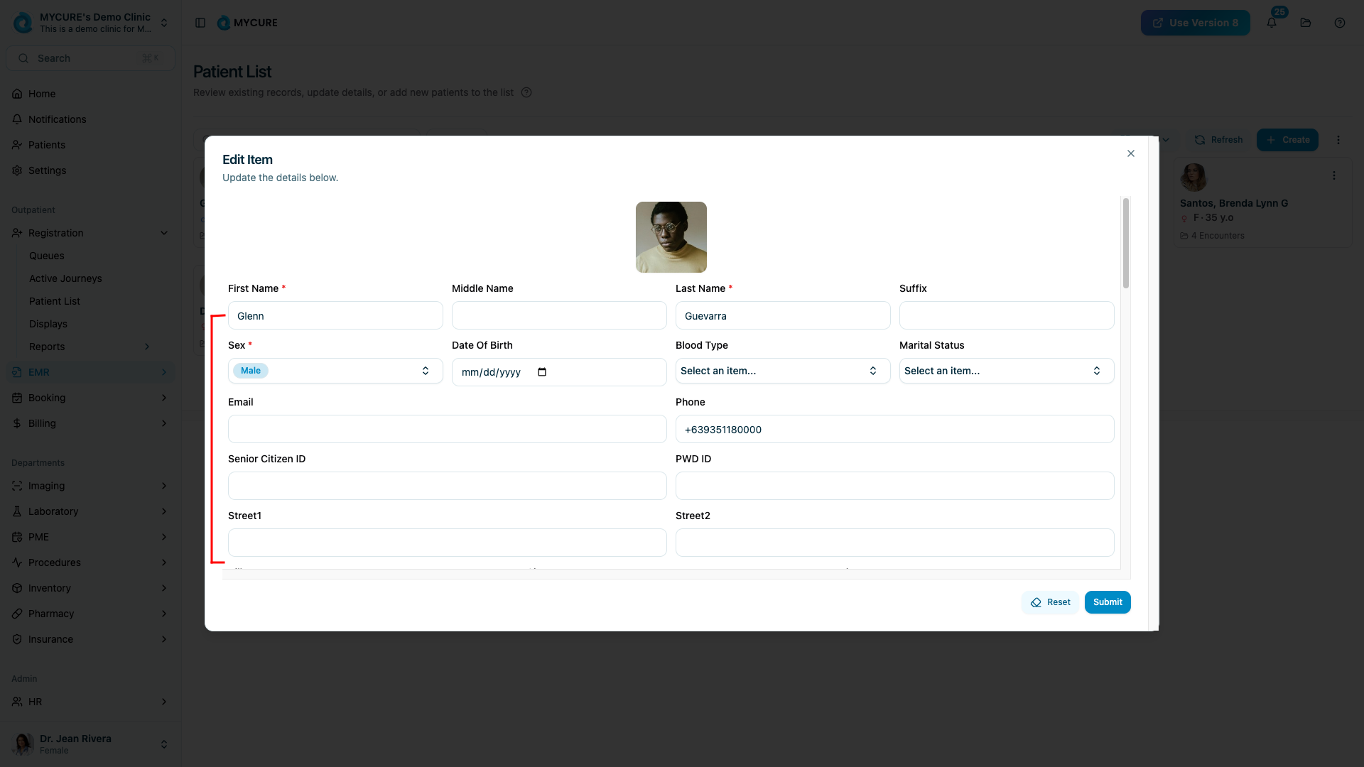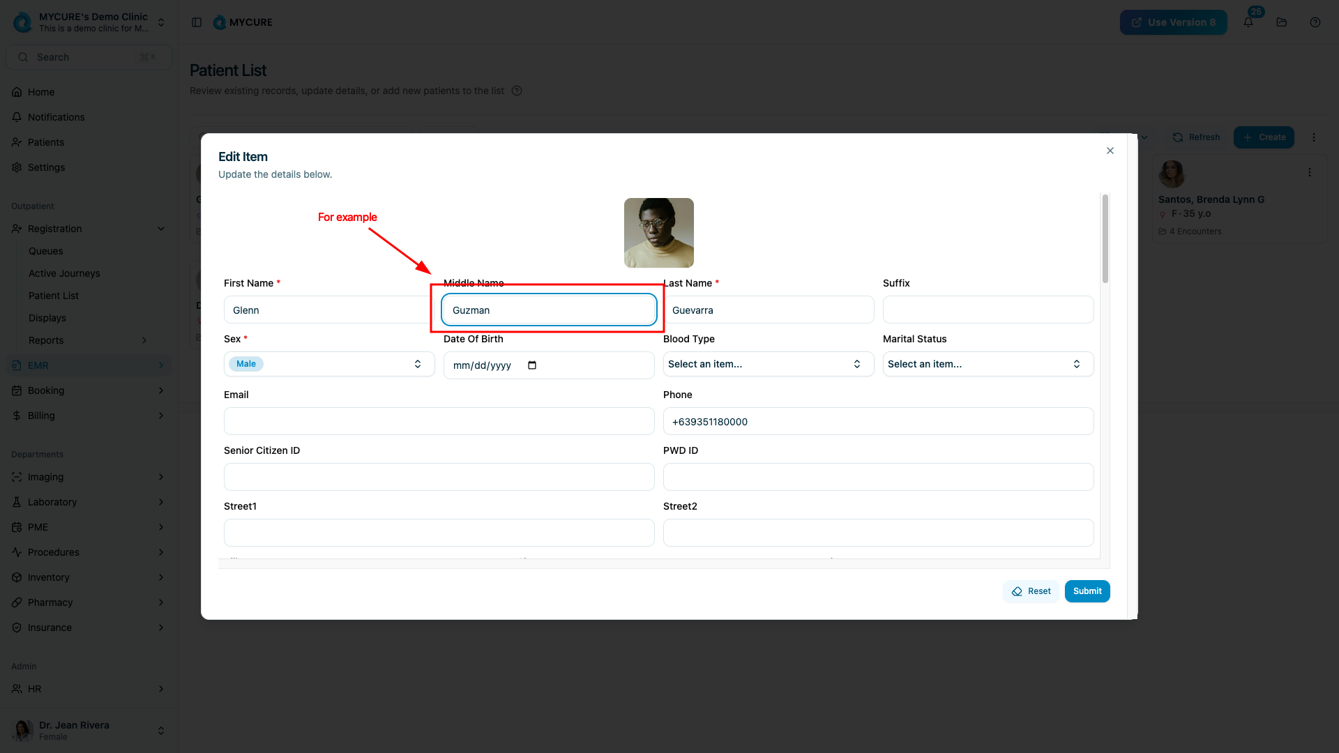 With the patient record now in edit mode, you can update any of the available fields: